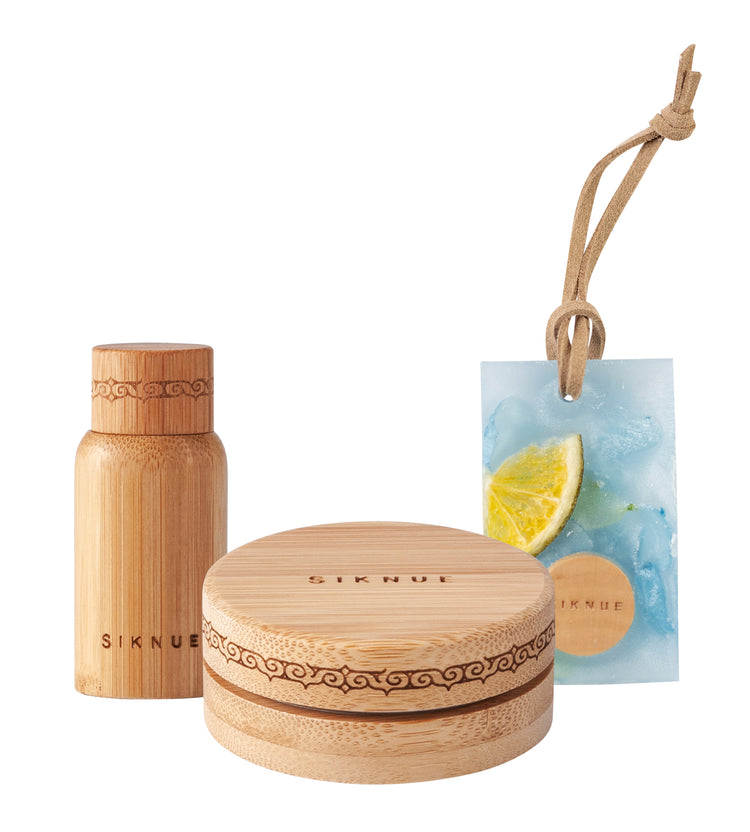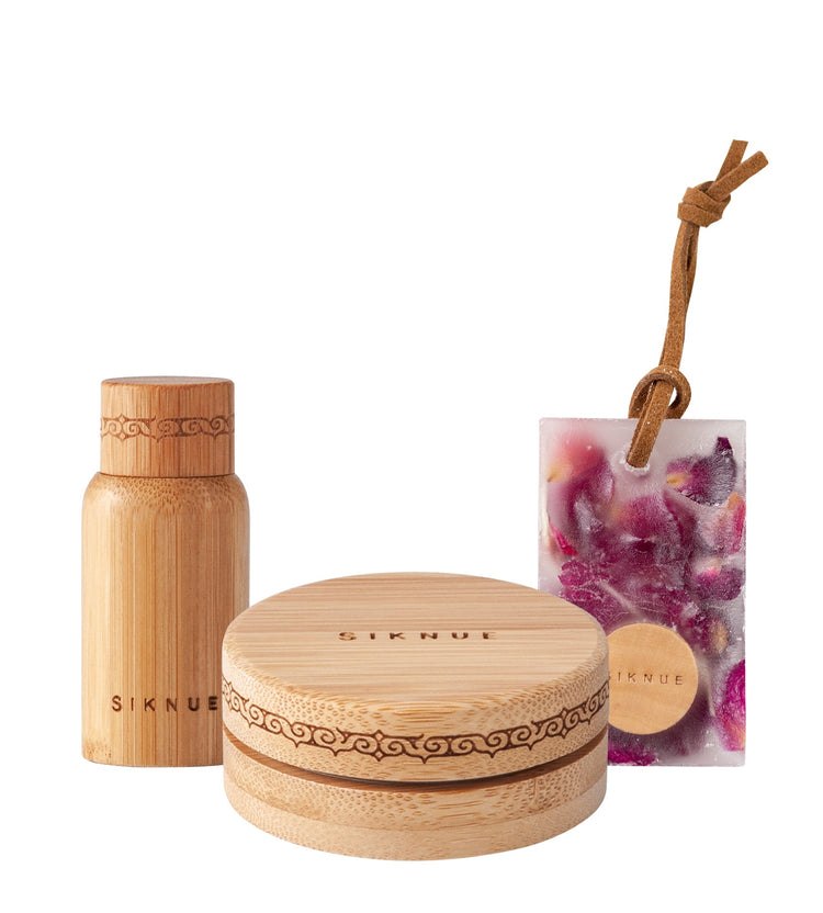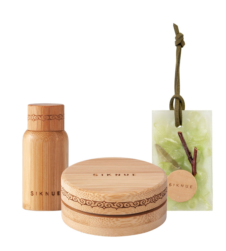 SIKNUE(シクヌ)は北海道の大自然に育まれアイヌ民族にも親しみのあるヨモギ、熊笹、鮭のコラーゲン、スズランなどをシンボル成分としています。